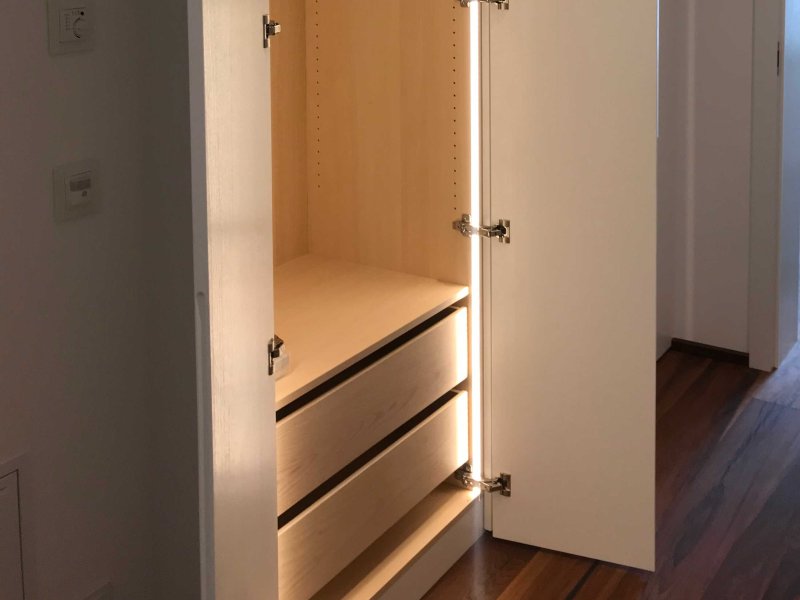 Hierbei kommt es zur Verarbeitung verschiedenster Hölzer und Materialien – je nach Kundenwunsch und Gegebenheiten. Neben der Neuproduktion können auch bestehende Möbel und Systeme ergänzt oder aufgearbeitet werden.
